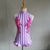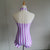 Super cute and elegant Shiny lilac and white stripe leotard with two layer ruffles and stunning pink and AB purple rhinestones.